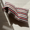 Fresh tomato red, denim & off-white stripe cotton twill. 88cm x 50cm