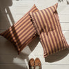 A traditional antique Swedish striped cushion, with a relaxed fill. We call these 'sloppy' cushions - perfect to throw over furniture with a relaxed attitude. Oversized with original pure down filling and a visible hand stitched edge.