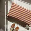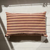 Light brown, red & navy stripe cotton & wool blend. This is one of a pair. 80cm x 50cm