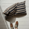 A traditional antique Swedish striped cushion, with a relaxed fill. We call these 'sloppy' cushions - perfect to throw over furniture with a relaxed attitude. Oversized with original pure down filling and a visible hand stitched edge.